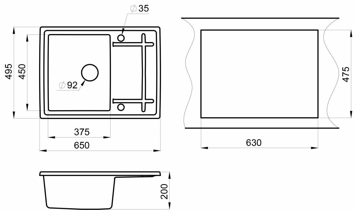 Электродуховки Мойка кухонная GRANULA 6501 Черный 65х49,5