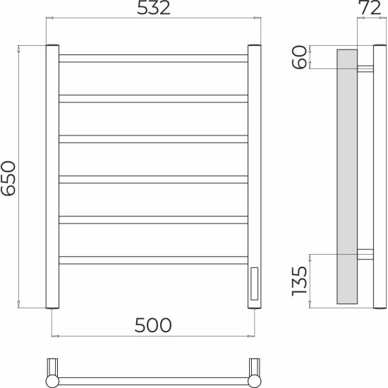 Полотенцесушитель электрич. "Классик" П6 500*650 С перекладиной (хром) (1) "TERMINUS" 14 031 ₽ Подробнее