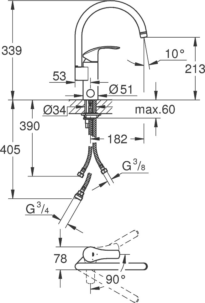 | Подвод воды | шланги / 445 мм / G 3/8" |