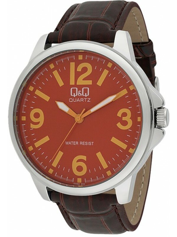 Лучшие цены. Мужские японские наручные часы Q&Q KW82-834 [KW82 J834Y]. Кварцевый механизм в высокой точностью +/-20 сек в месяц. Прочное, устойчивое к царапинам, минеральное стекло обеспечит защиту часов от повреждений. Водонепроницаемость 30WR (3 Бар) защитит Ваши часы от брызг и дождя, но плавать в них нельзя. Ударопрочный корпус часов сделан из нержавеющей стали с высокими антикоррозийными свойствами. Ремешок из высококачественной натуральной кожи с классической застежкой – это стильно, удобно и практично. Магазины в вашем городе.