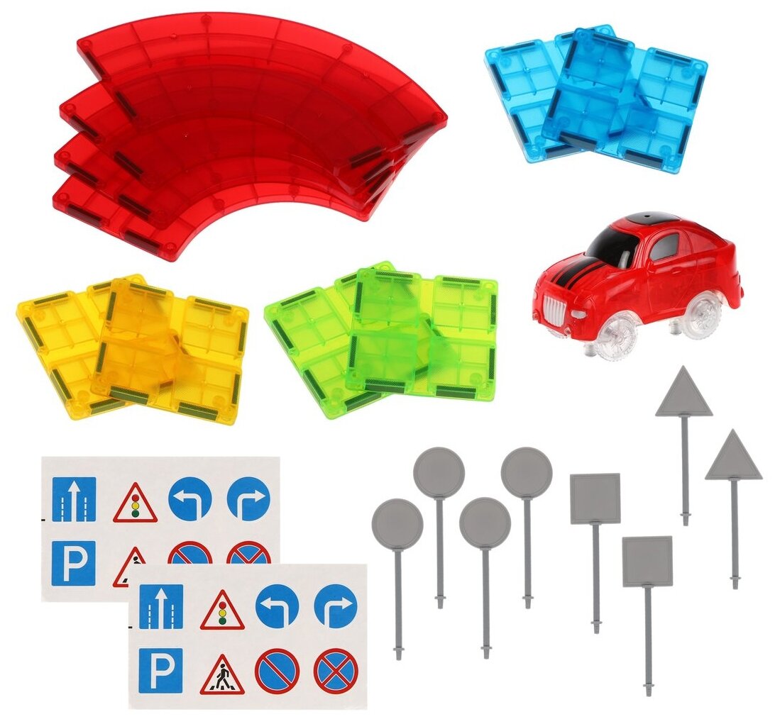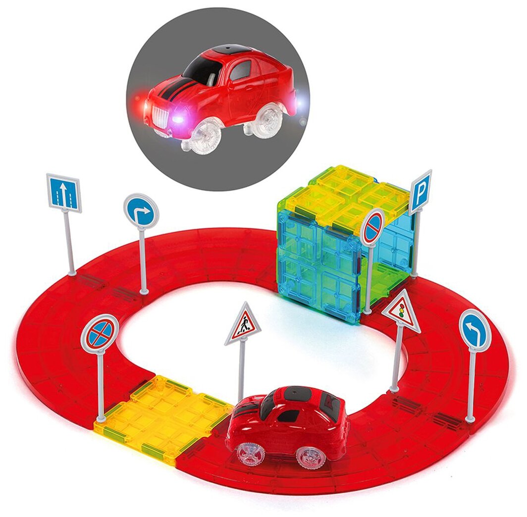 Лучшие цены. Магнитный конструктор от ТМ On Time превратит обычную игру в машинки в увлекательную логическую задачу для развития пространственного мышления! В комплекте – 19 деталей, из которых ребёнок сможет построить захватывающий автотрек. Элементы конструктора нужно соединить между собой так, чтобы дорога замкнулась как настоящая гоночная трасса. Машинка, которая также входит в состав игрового набора, будет ездить по кругу с включенными передними и задними фарами. Магазины в вашем городе.