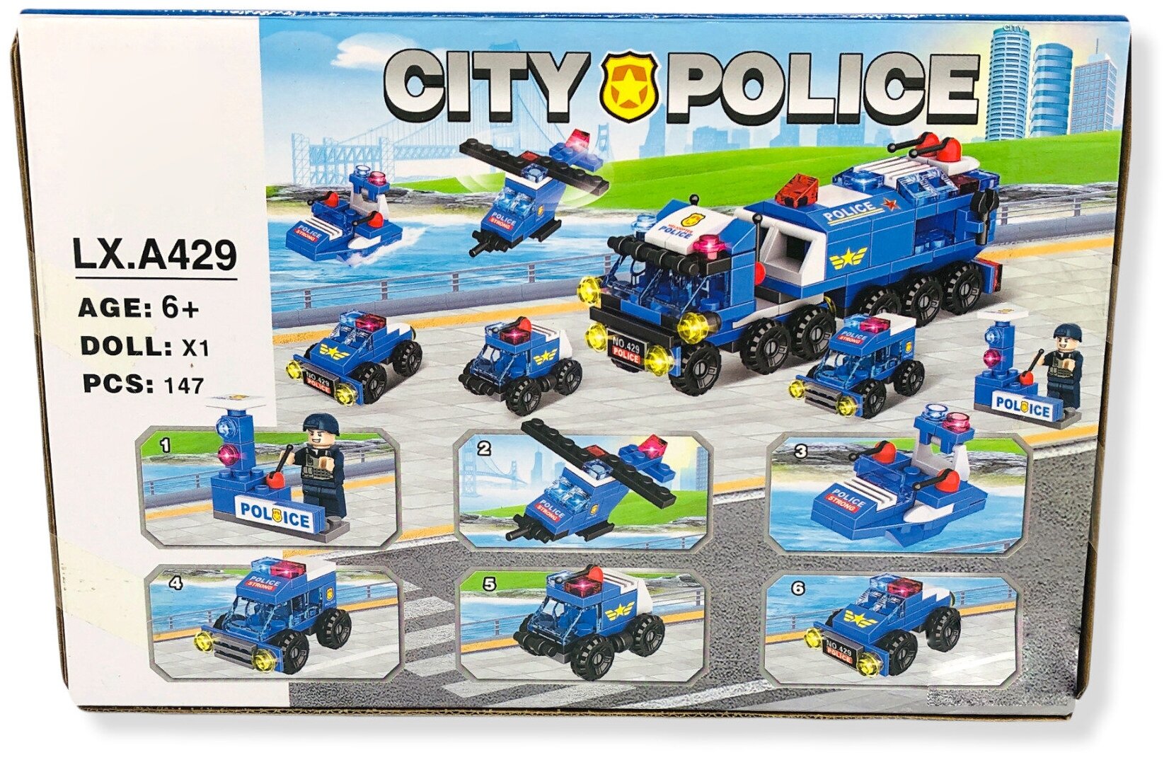 Лучшие цены. Конструктор LX. A429 City Police "Городская полиция" - это модель полицейской машины, которая разбирается на 6 разных конструкторов, объединённых одной тематикой. Такой конструктор станет прекрасным подарком для мальчика любого возраста. В этом наборе вы найдете 147 деталей, из которой можно собрать полицейскую машину со всеми необходимыми атрибутами для маленького полицейского. Детали легко крепятся между собой в различных комбинациях, что также способствует развитию фантазии ребенка. Магазины в вашем городе.