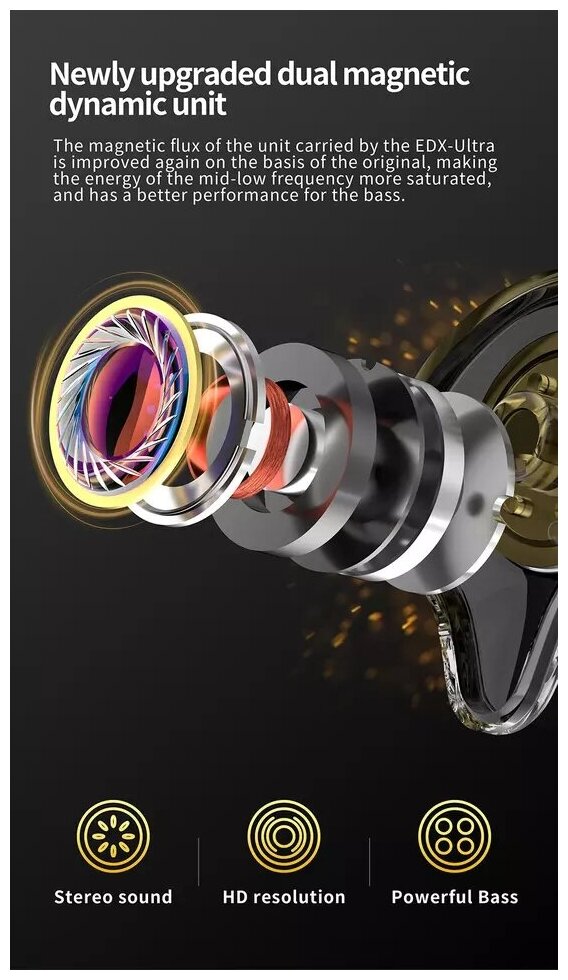 Наушники Спортивные игровые проводные наушники KZ EDX-Ultra HIFI с бассами, шумоподавлением и микрофоном - черные