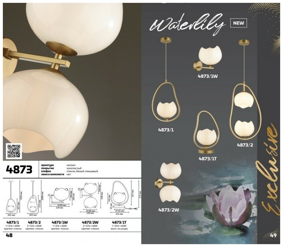 4873/1T MODERN ODL_EX22 49 золотой/белый/стекло Настольная лампа E14 1*40W WATERLILY 10 690 ₽ Подробнее