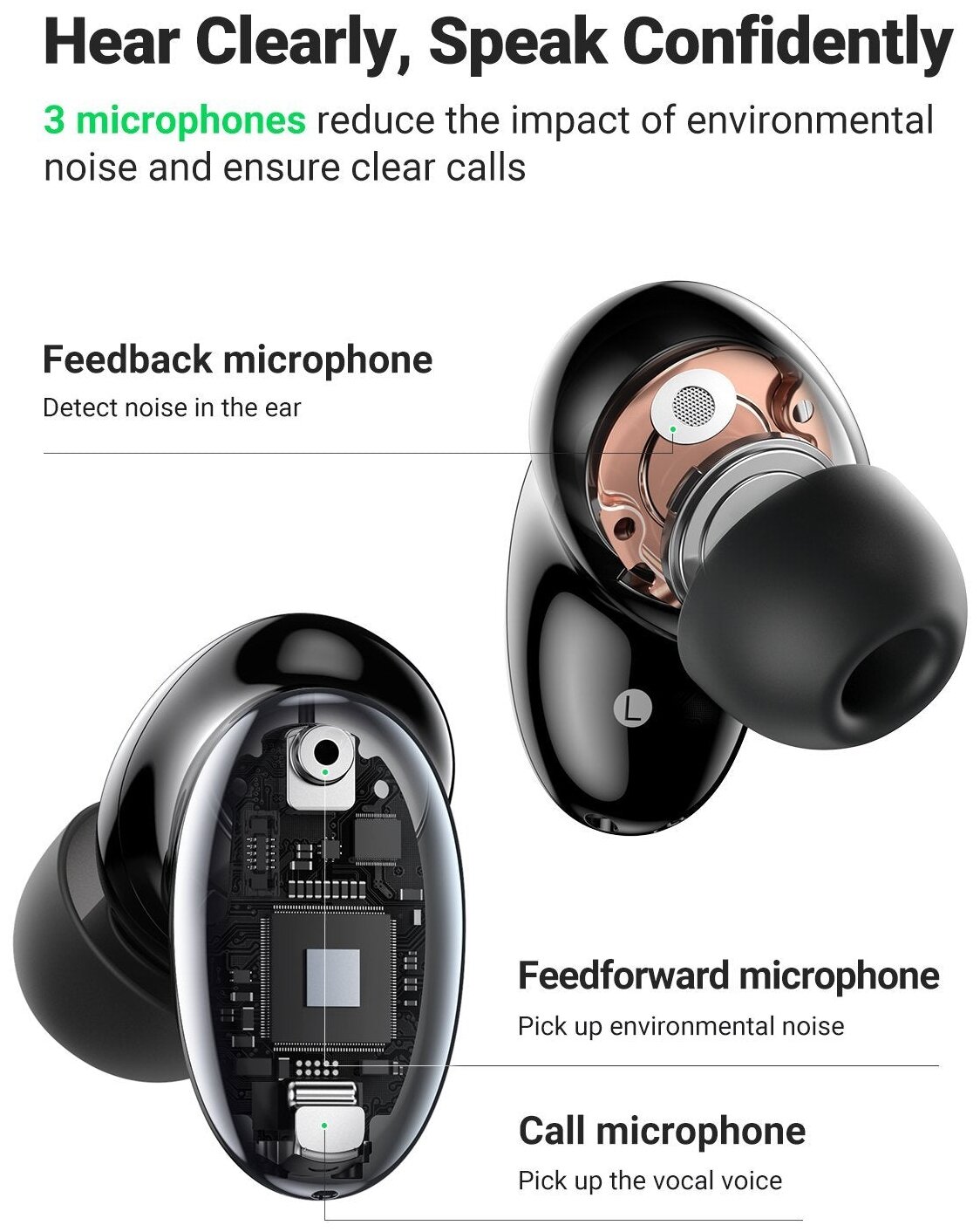 Наушники Наушники Ugreen HiTune X6 ANC Earbuds Black Bluetooth 5.1 <90242>
