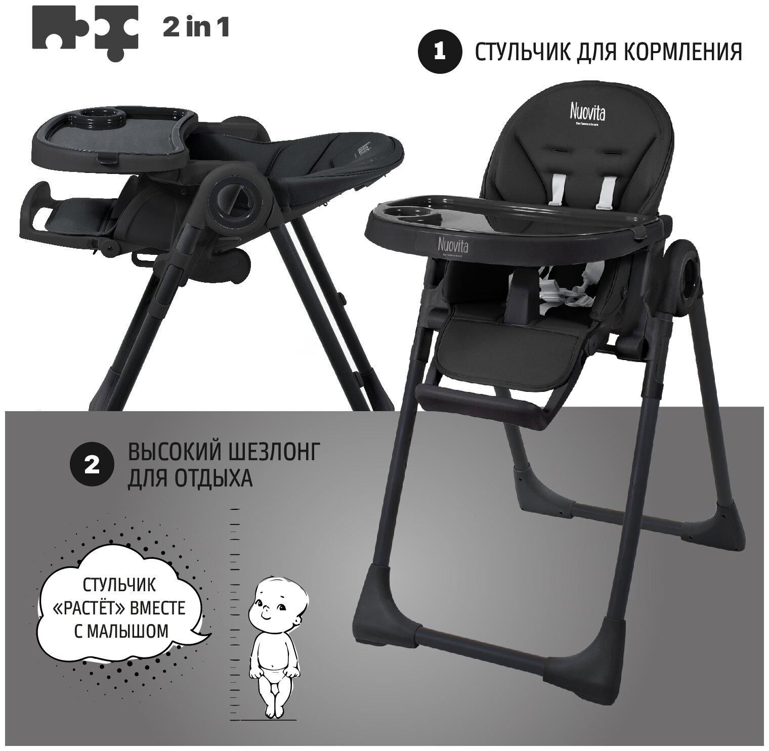 Стульчики для кормления Стульчик для кормления Nuovita Lembo (Nero, Nero/Черный, Черный)