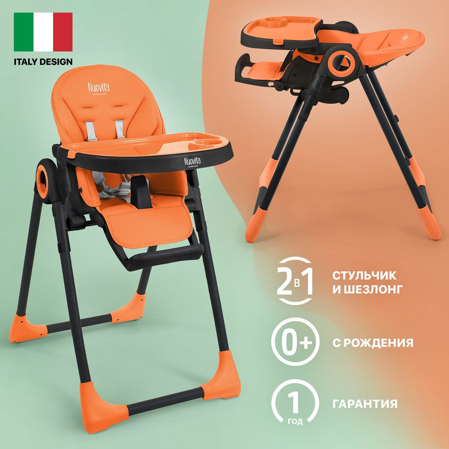 Стульчик для кормления Nuovita Lembo (Arancione, Bianco/Оранжевый, Белый)