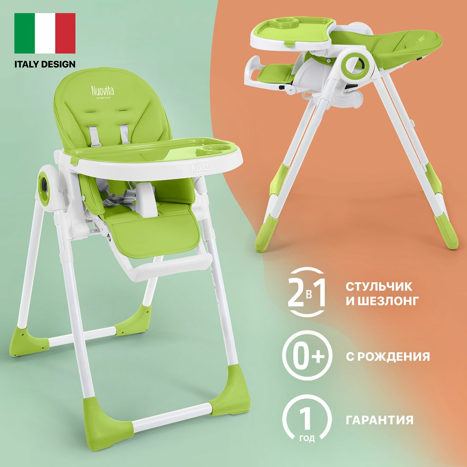 Стульчики для кормления Стульчик для кормления Nuovita Lembo (Verde, Bianco/Зеленый, Белый)