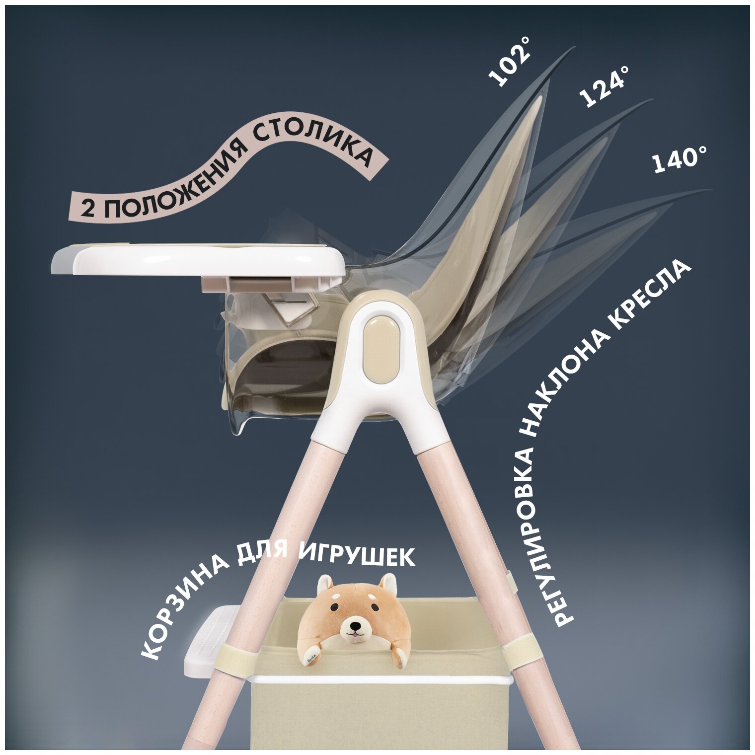 | Дополнительно | съемный столик / столешница с бортиком / ремни безопасности |