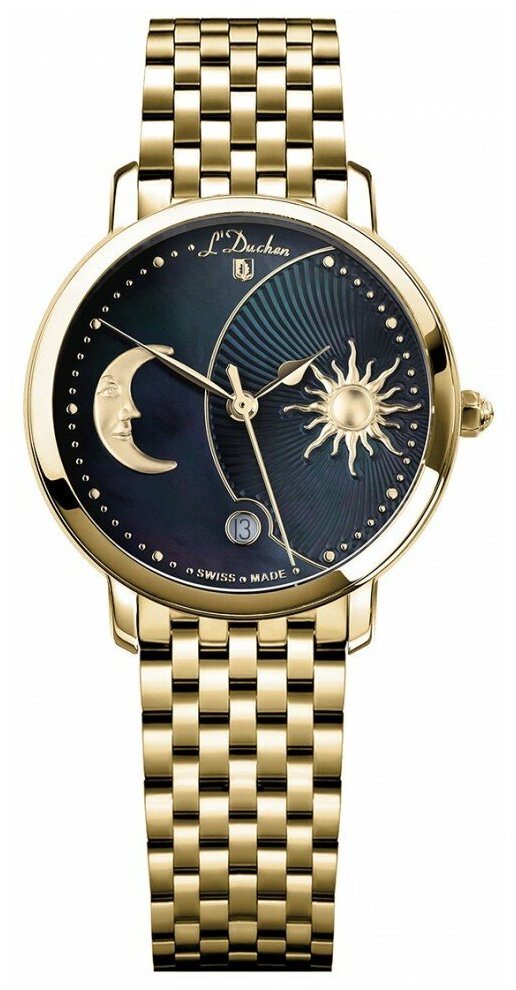 Лучшие цены. Часы наручные L`Duchen D 781.20.31. На циферблате этих женских часов L`Duchen прослеживается условное разделение суток на день и ночь. Индикатор даты в нижней части циферблата добавляет модели функциональности. Изящные стрелки помогают легко определить время, не закрывая красоту и элегантность, созданную истинными мастерами часового дела. Корпус из нержавеющей высоколегированной стали. Бесперебойную работу часов обеспечивает кварцевый швейцарский механизм. Магазины в вашем городе.