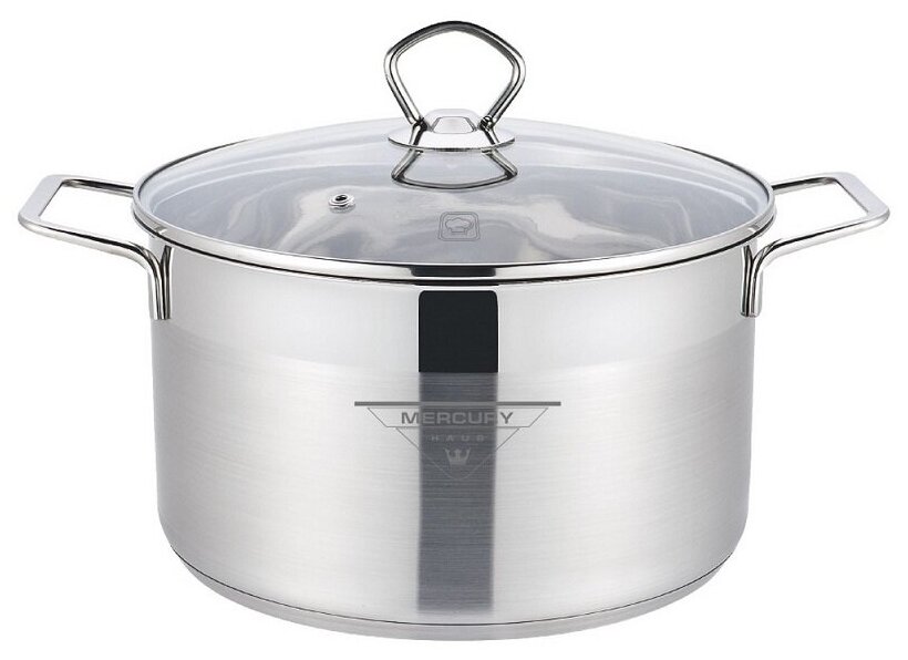 Лучшие цены. Кастрюля с крышкой MercuryHaus объемом 3,5 л и размером 20х11,5 см хорошо подходит для приготовления различных вкусных и полезных блюд для всей семьи. Она выполнена из нержавеющей стали, отличающейся долговечностью и надежностью. Ее можно использовать на любых плитах, в том числе индукционных. Ручки выполнены из прочного материала и обеспечивают надежный хват. Стеклянная крышка дополнена специальным отверстием, которое предназначено для выпуска горячего пара. Магазины в вашем городе.