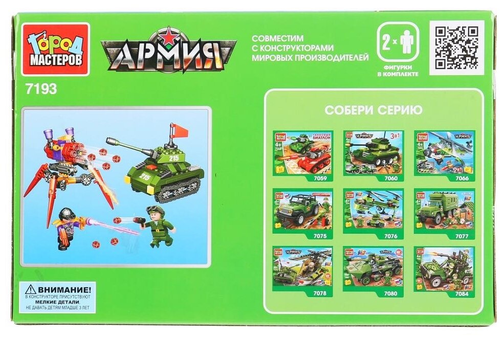 Конструктор игрушки_конструктор_"город мастеров" танк с фигурками, 224дет. 952218