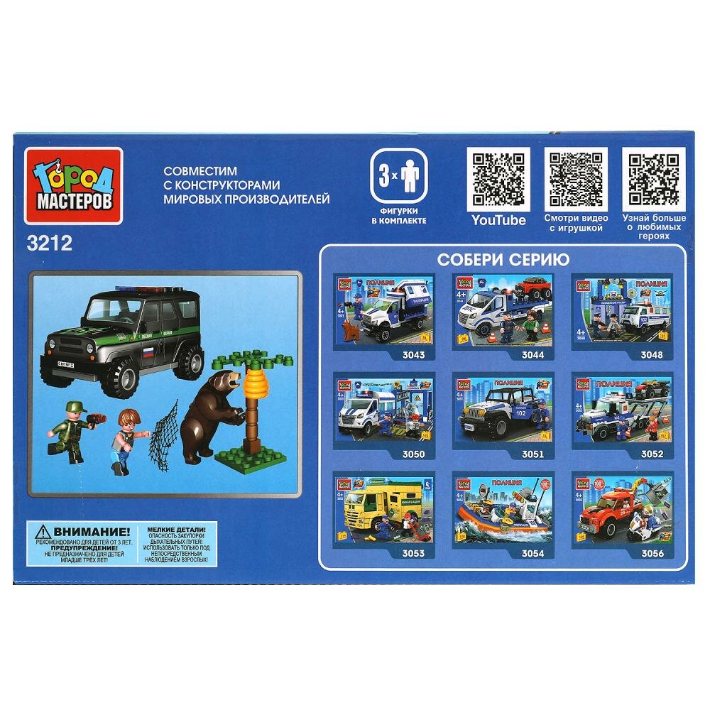 Лучшие цены. онструктор «УАЗ Hunter. Лесная полиция» ТМ «Город мастеров» понравится маленьким защитникам природы. Особенности и комплектация: - 89 деталей - 3 фигурки - оружие стреляет - совместим с моделями конструкторов мировых брендов - все детали легко и плотно соединяются между собой С помощью этого занимательного конструктора ваш ребёнок может собрать реалистичную модель машины лесной охраны и помочь отважному егерю спасти медведя от браконьера. Магазины в вашем городе.