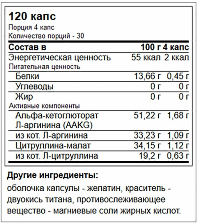 | Количество капсул / таблеток | 120 шт |
