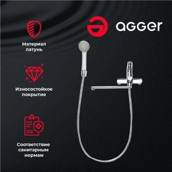 Смеситель для ванны с душем и с длинным изливом Agger Nice A2521100, хром 8 390 ₽ Подробнее