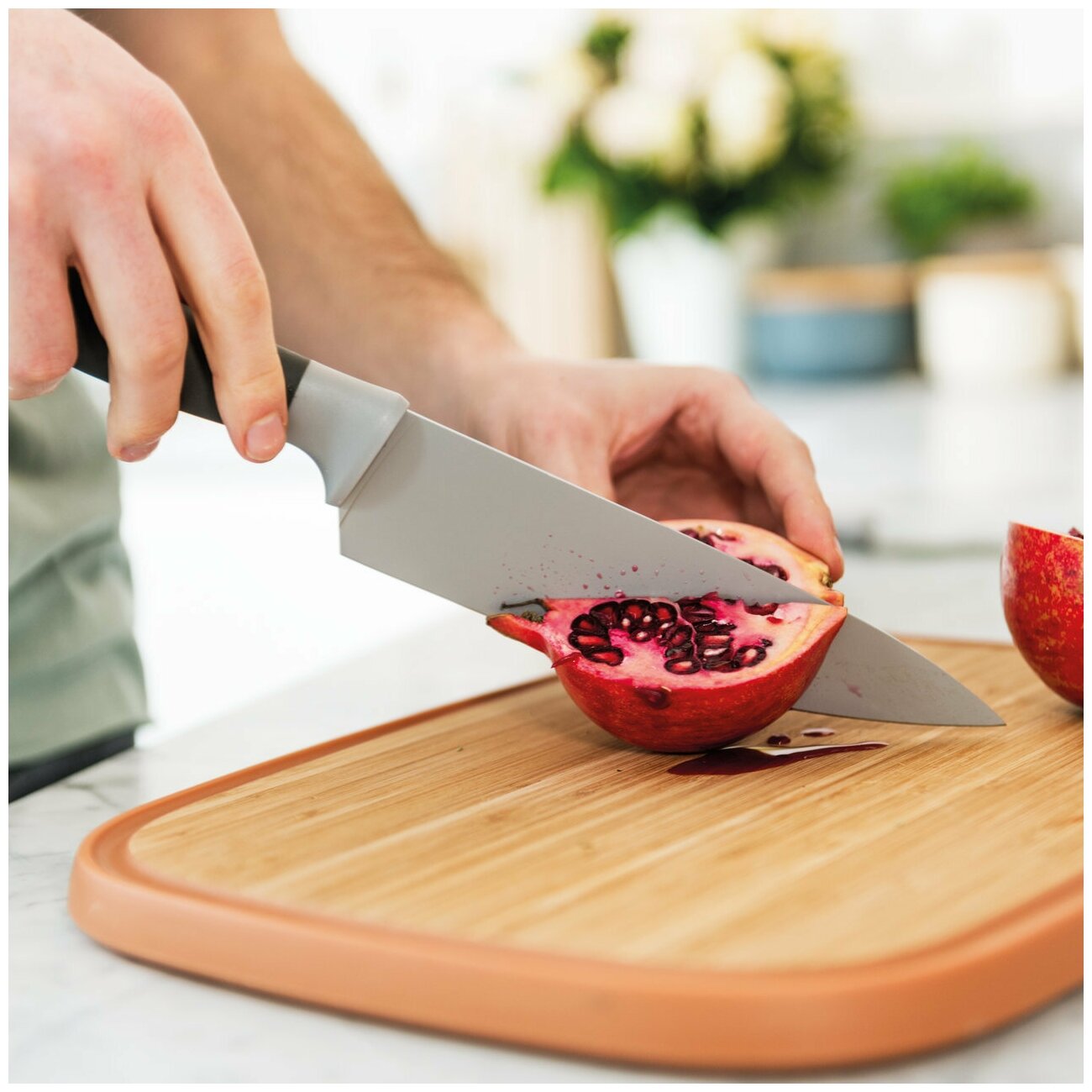 Лучшие цены. Хотите добавить ярких цветов на вашу кухню? Этот поварской нож - идеальное дополнение! Его можно использовать для нарезки рыбы или мяса, шинковки овощей, зелени, и почти любых других задач. Мягкая рукоятка в сочетании с острым лезвием из нержавеющей стали с покрытием от налипания делают этот нож особенно приятным в работе. В комплекте с ножом идёт чехол, который позволит безопасно хранить этот нож или перевозить его. Внешние размеры: 34x6,5x2,5см. Длина лезвия: 19см. Материал: нержавеющая сталь (X30Cr13). Магазины в вашем городе.