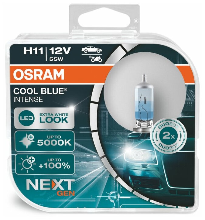 Автолампы Лампа автомобильная галогенная OSRAM COOL BLUE INTENSE H11 64211CBN-HCB 12V 55W PGJ19-2 2 шт. (старый арт 64211CBI-HCB)