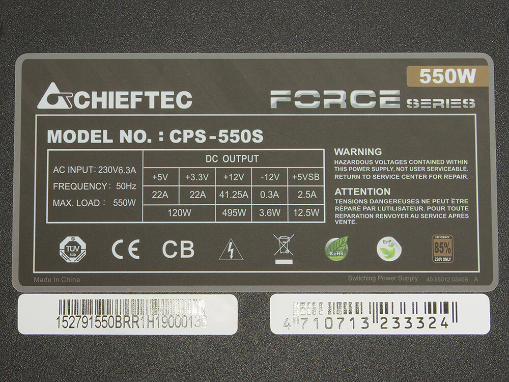 Блок питания Chieftec Force CPS-550S (550W) 4 169 ₽ Подробнее