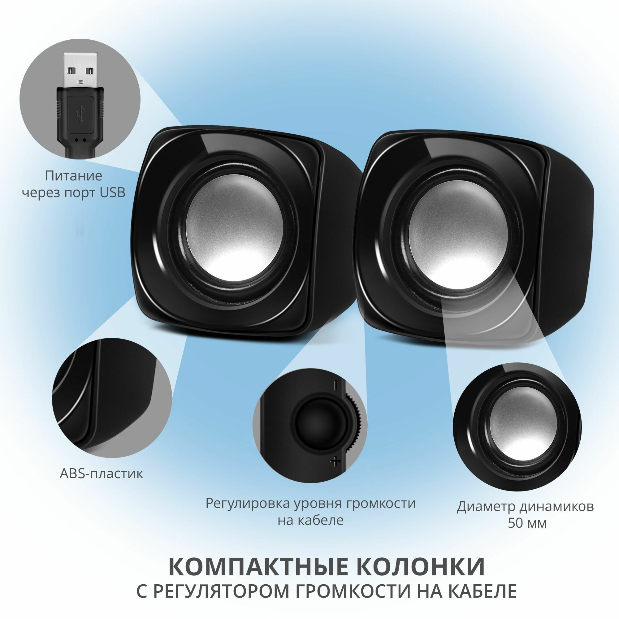 Колонки для компьютера, ПК, ноутбука / Акустическая система 2.0 SVEN 120 чёрный / 5 Вт / питание USB / Компьютерные колонки музыкальные
