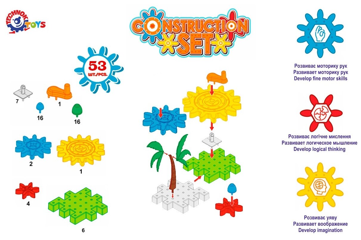 Лучшие цены. Игрушка «Конструктор ТехноК» — это замечательная развивающая игрушка с шестернями, которая поможет ребёнку в игровой форме изучить различные физические явления и основы механики. Играть этим конструктором так же интересно, как и собирать его. В наборе шестерни разного размера, пластины-пазлы и фишки мозаики. С пластин белого и салатового цветов собирается куб или плита, на которые фиксируются шестерни с помощью специальных креплений. Магазины в вашем городе.
