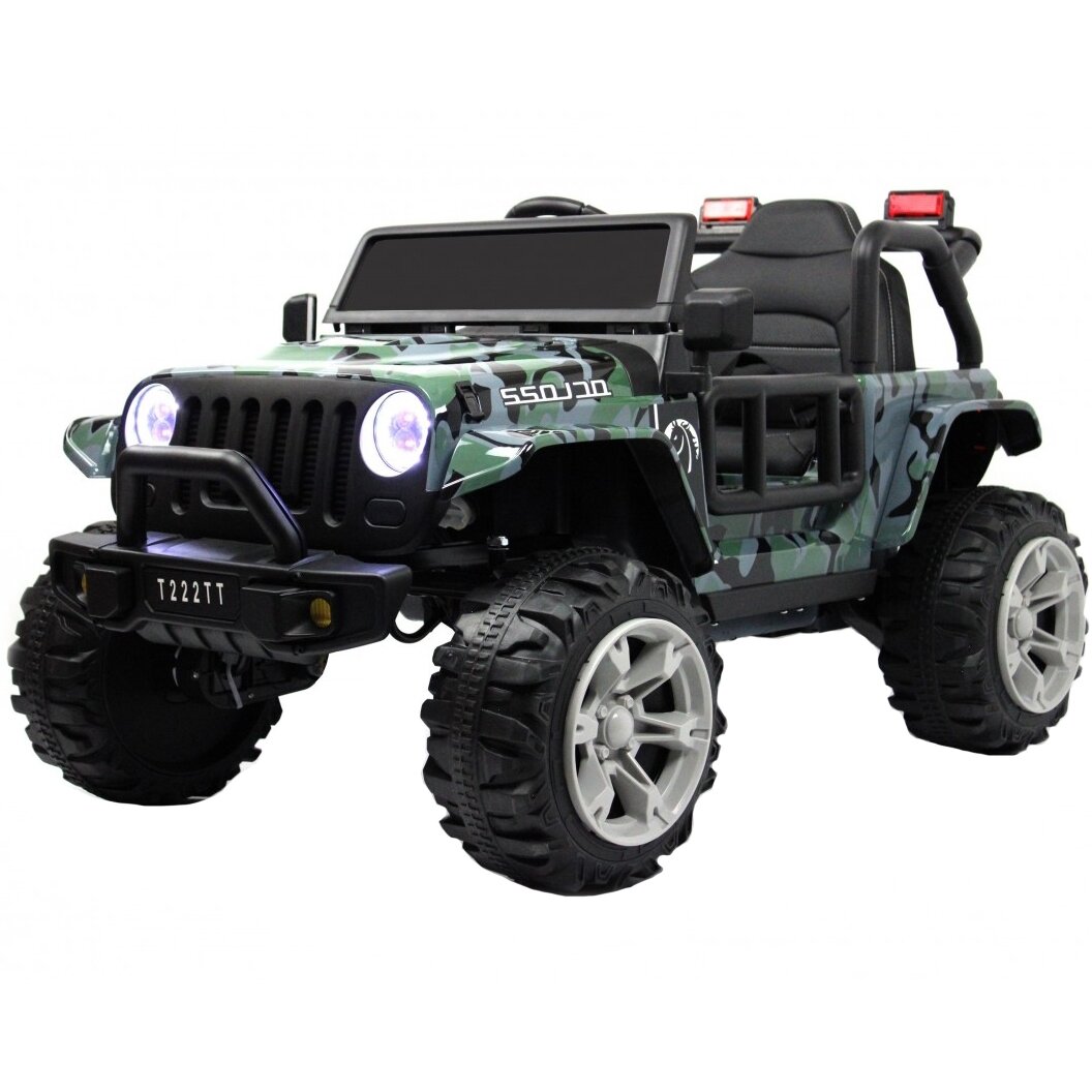 Лучшие цены. Электромобиль T222TT - это детский джип с дистанционным управлением. Сзади выдвигается ручка, позволяющая перемещать электромобиль по принципу «чемодана». В комплекте поставляется лопатка. Модель имеет большие каучуковые колеса, передние и задние амортизаторы для мягкой и плавной езды по неровному дорожному покрытию и открывающиеся двери. Сидение мягкое, кожаное и оснащено полосным ремнем безопасности. Передние фары со светодиодной подсветкой. Отдельной кнопкой включаются прожекторы. Магазины в вашем городе.