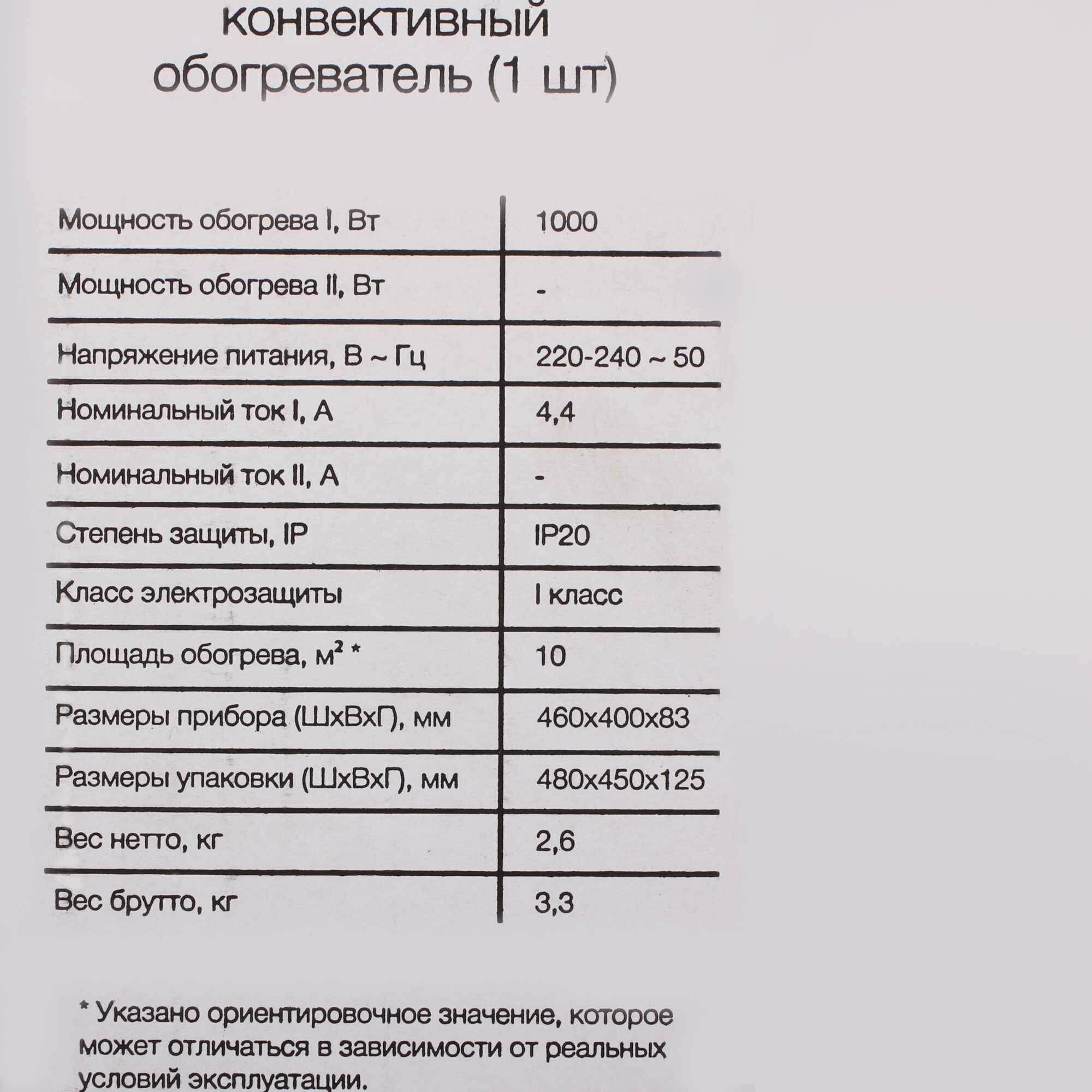 Конвектор LM LCM-1000 механический термостат 1000 Вт