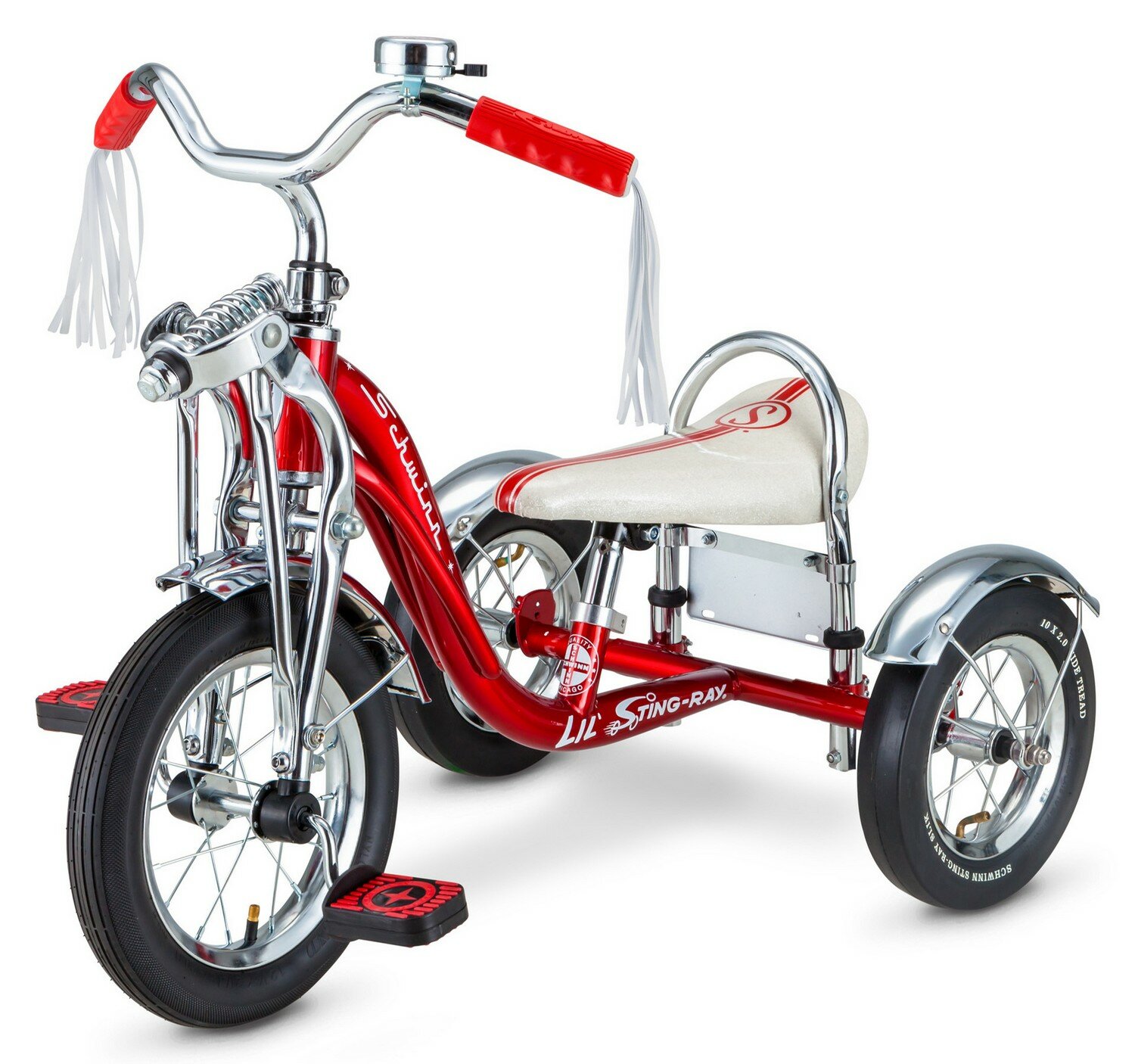 Лучшие цены. Трехколесный детский велосипед, предназначенный для детей в возрасте от полутора до трех лет, без переключения передач. Технические особенности: стальная рама Schwinn trike, амортизационная вилка спрингер, одинарные стальные обода, тормоза не предусмотрены конструкцией, удлинённое седло банан, крылья, звонок. Подходит для обучения и легких прогулок. Диаметр колес - 12/10 дюймов. Вес - 9,59 кг. Магазины в вашем городе.