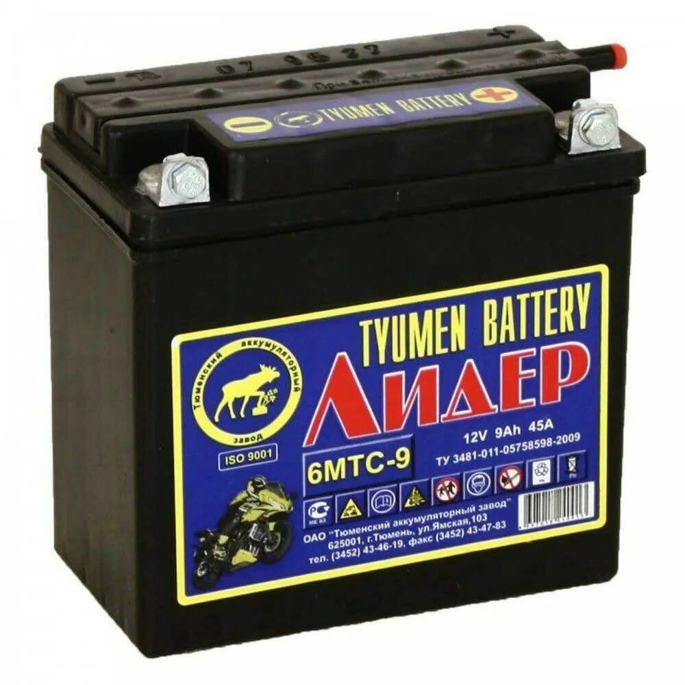 Аккумулятор мото Tyumen Battery Лидер 9 а/ч 45А под болт Обратная полярность