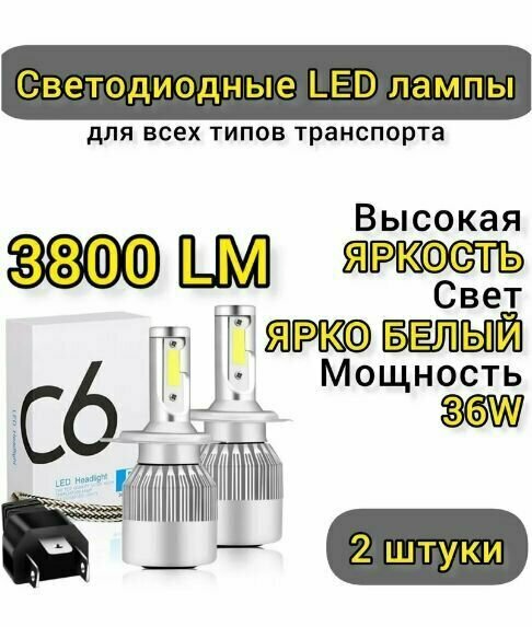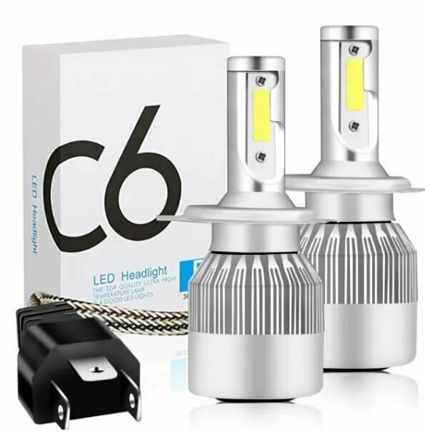 Лучшие цены. Светодиодные лампы LED HEADLIGHT C6 H4 5-го поколения для головного света и птф, в 1,5 раза более яркие, чем галогенные лампы. Очень яркие светодиодные лампы с насыщенным холодным белым цветом свечения, отлично справляются с освещением в любую погоду. Четкая светотеневая граница, приближены к галогену, не слепят встречный транспорт. Данные лампы подходят для установки на любой автомобиль в противотуманные фары и фары головного света с цоколем H4. Магазины в вашем городе.