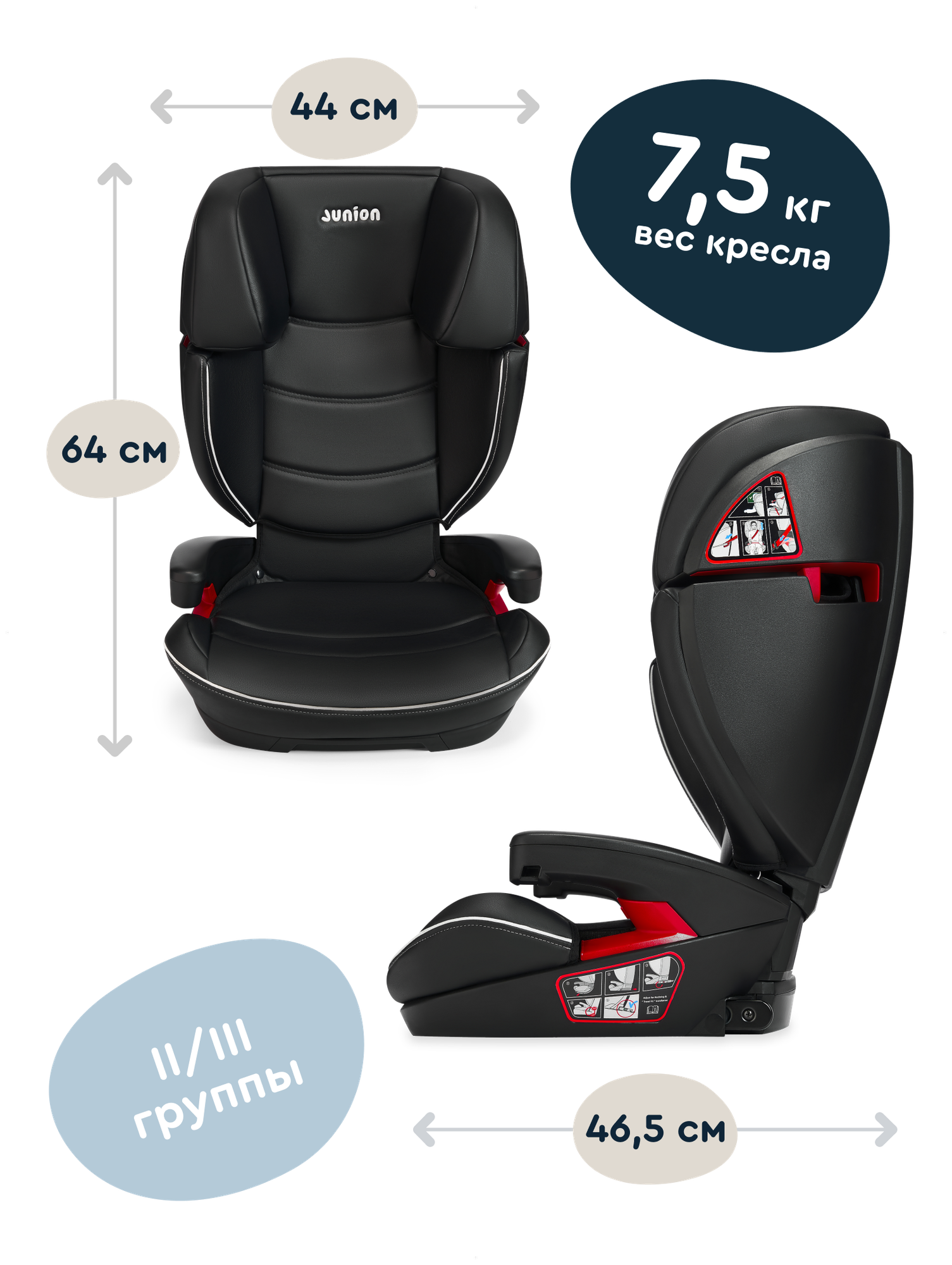 Детские автокресла Автокресло JUNION Croco группа 2/3 (15-36 кг), Isofix, чёрный