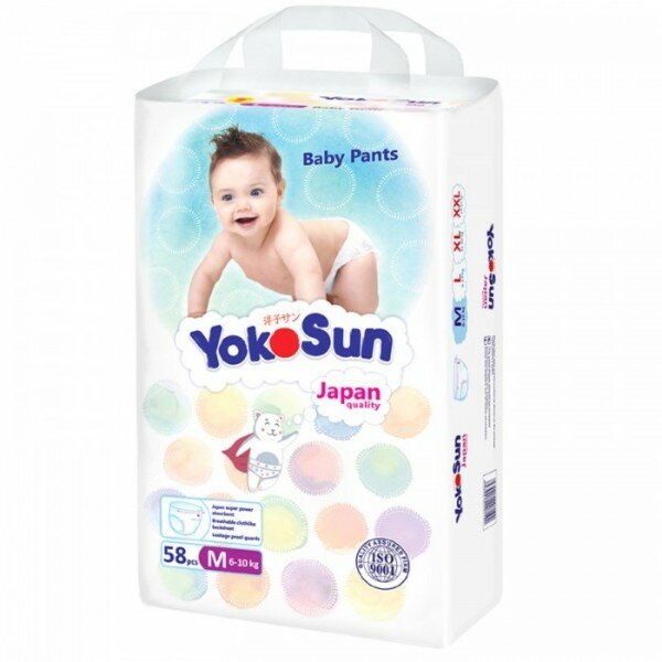 Подгузники-трусики YOKOSUN, размер M (6-10 кг), 58 шт
