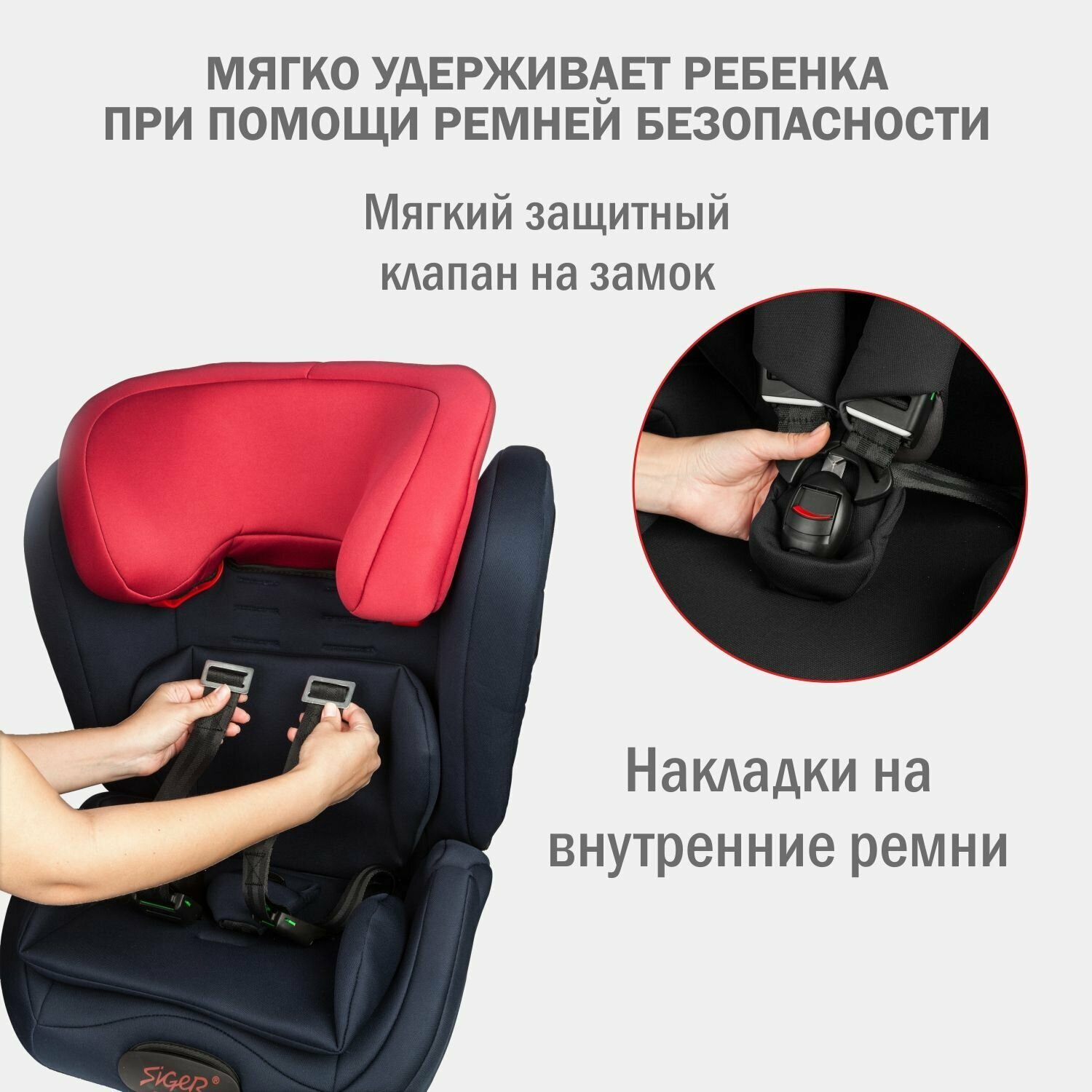 Лучшие цены. Автокресло Siger «Гранд Isofix» разработано для детей от 1 года до 12 лет, весом от 9 кг до 36 кг. Относится к возрастной группе 1/2/3. Кресло трансформируется под три возрастные группы: от 1 года до 3-4 лет (полная комплектация), от 3 до 6-7 лет (снимаются ремни и внутренние накладки), от 7 до 12 лет (фиксация подголовника в крайнем верхнем положении). Перфорированная ткань в области спины не допускает перегрева и обеспечивает вентиляцию. Магазины в вашем городе.