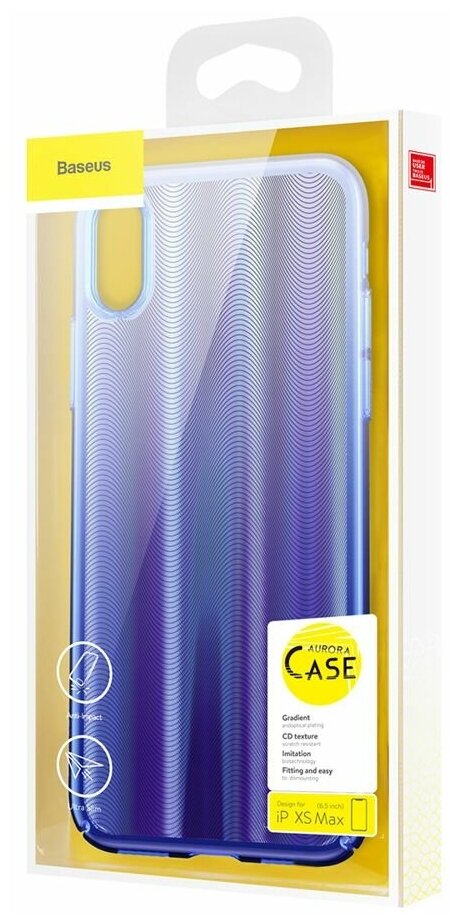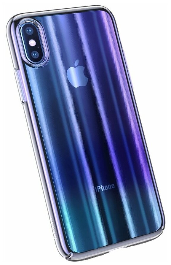 Лучшие цены. Тонкий и полупрозрачный чехол-накладка Aurora Series от компании Baseus отличается своим характерной фирменной расцветкой, которая переливается на солнце в виде полупрозрачного цветового градиента. Конструкция чехла, при этом, спроектирована для быстрой и удобной установки - для этого на одном из углов обустроена специальная прорезь. Чехол выполнен из жесткого пластика, и покрывает заднюю и боковые стороны iPhone XS Max. Магазины в вашем городе.