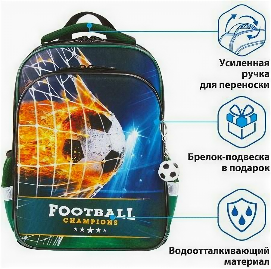 Школьный рюкзак (ранец) Ранец BRAUBERG Fire football 17 л зеленый