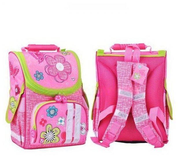 Рюкзак Ранец жесткокаркасный BRAUBERG для учениц начальной школы, "Цветы и бабочка", 17 литров, 36х26х14 см, 225324