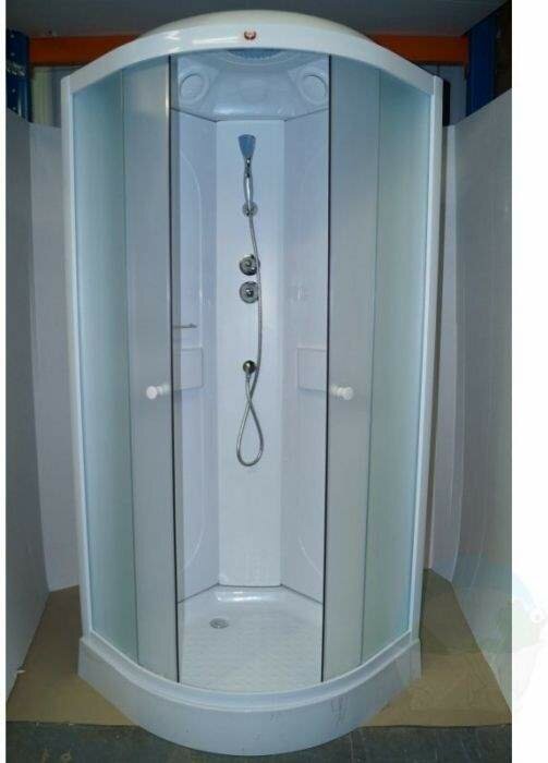 Лучшие цены. Размеры: 900 x 900 x 2150 мм Особенности: поддон - ABS-пластик, низкий, 10 см, на регулируемых ножках, белый двери - закаленное матовое стекло, 4 мм, раздвижные стенки - акрил, белый профиль - алюминий, белый верхний душ ручной душ сифон в комплекте безсиликоновая сборка Страна бренда: Китай. Магазины в вашем городе.