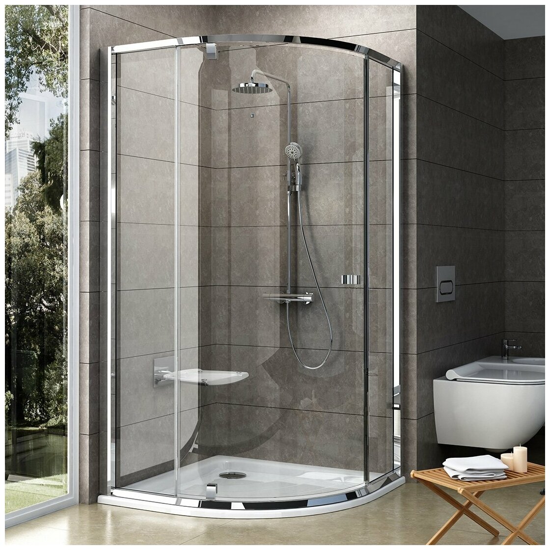 Лучшие цены. Условный размер, мм: 900 x 900 x 1900 Габариты с регулировками, мм: (870-895) x (870-895) x 1900 Тип дверей: трехэлементная распашная Стекло: 6 мм, прозрачное Transparent Профиль: блестящий Особенности: ручка и петли в исполнении хром; витраж с защитным слоем AntiCalc® - невидимый щит от грязи и известковых отложений; регулирующий профиль PNPS позволяет увеличить ширину двери до 4 см с каждой стороны; поворот изделия на 180° определяет вариант установки: левосторонний или правосторонний. Магазины в вашем городе.