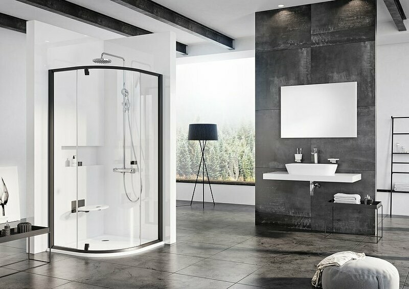 Душевой угол полукруглый трехэлементный Ravak Pivot PSKK3-90 черный+транспарент