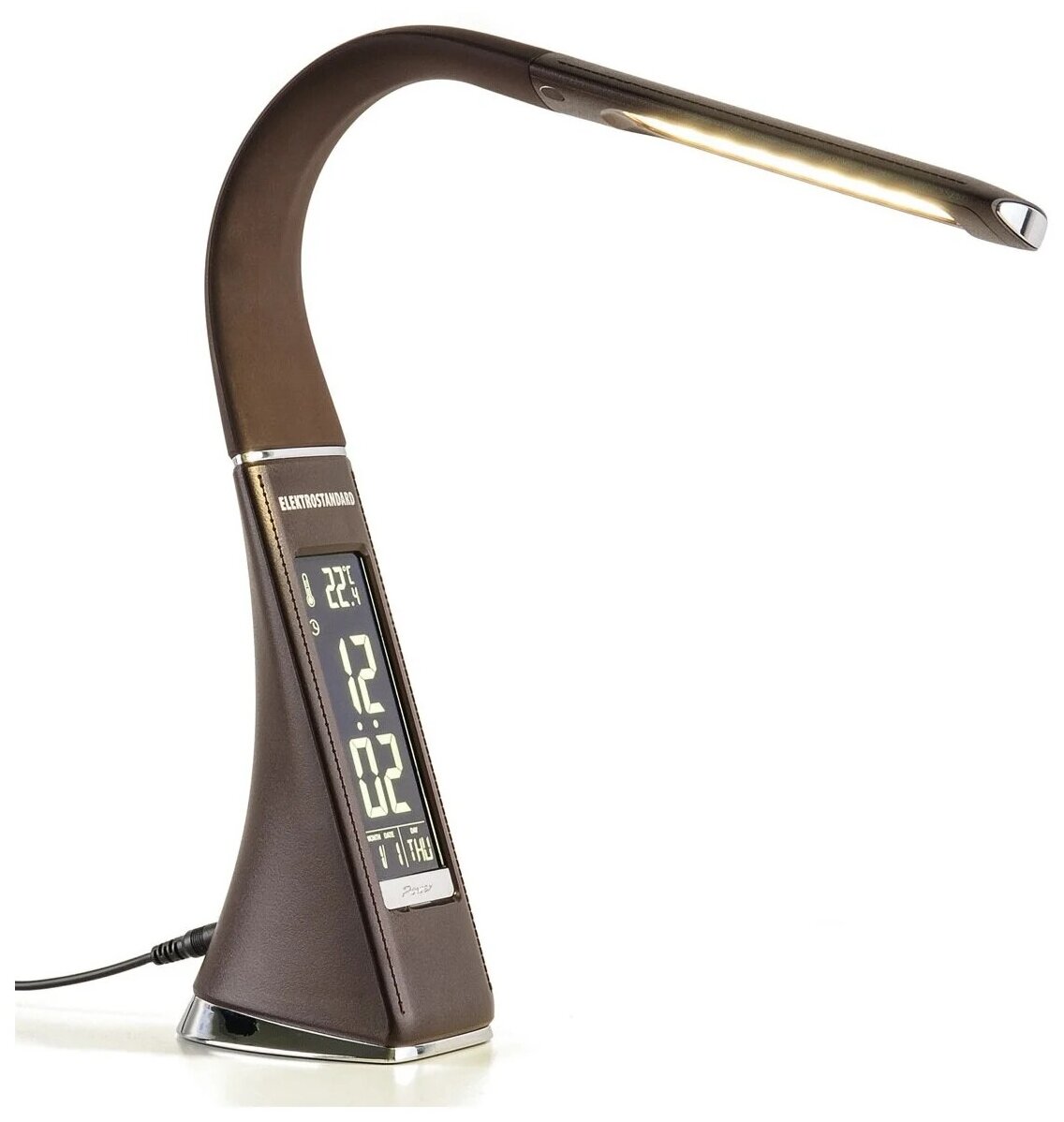 Светильник настольный светодиодный 6Вт сенсор-диммер, часы с будильником, календарь, термометр, Elektrostandard Elara коричневый TL90220