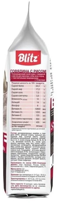 BLITZ ADULT BEEF & RICE сух. корм д/взрослых собак всех пород Говядина и Рис 2кг