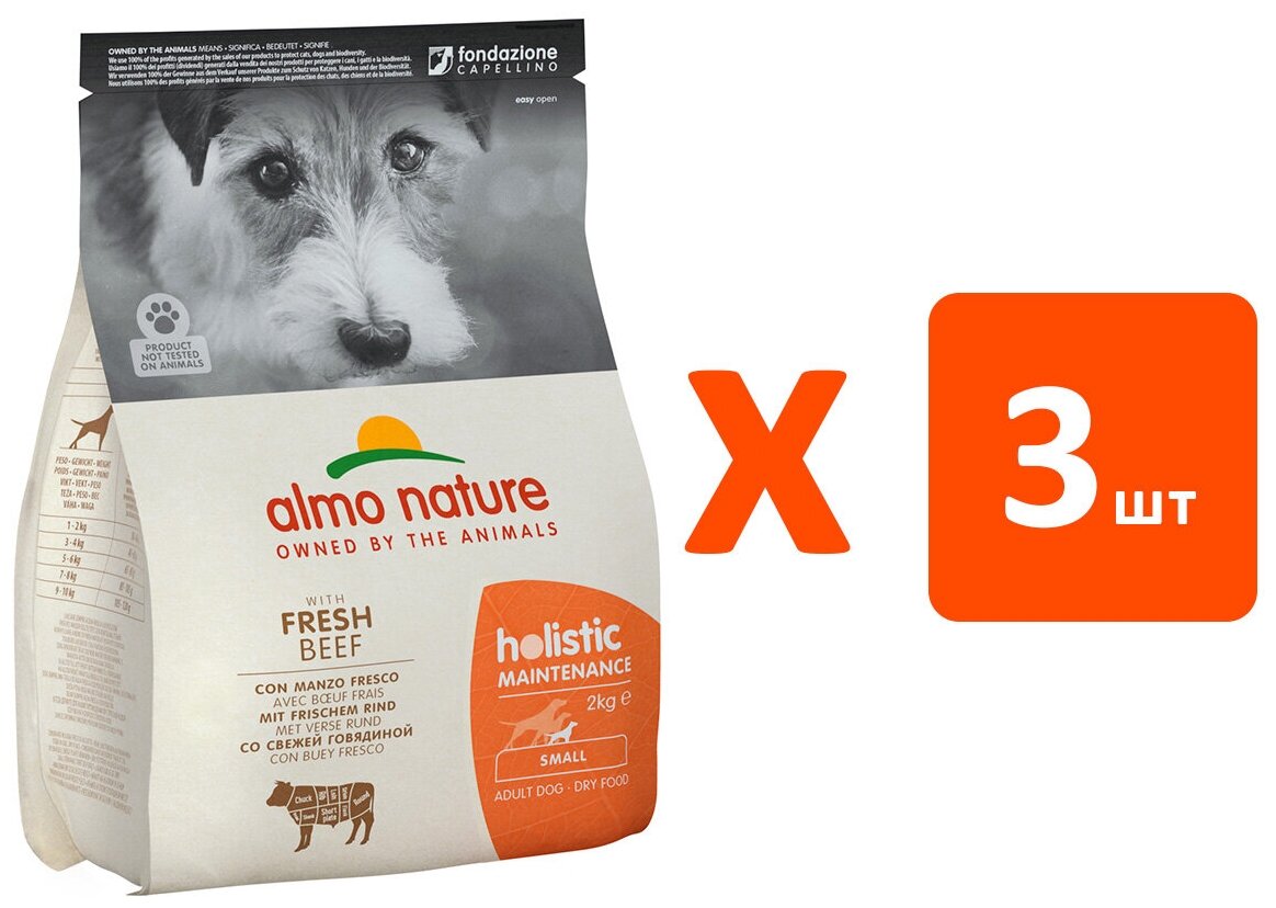 Корм для собак Almo Nature Для Взрослых собак Малых пород с Говядиной (Holistic - Small&Beef and Rice) 2 кг х 3 шт.