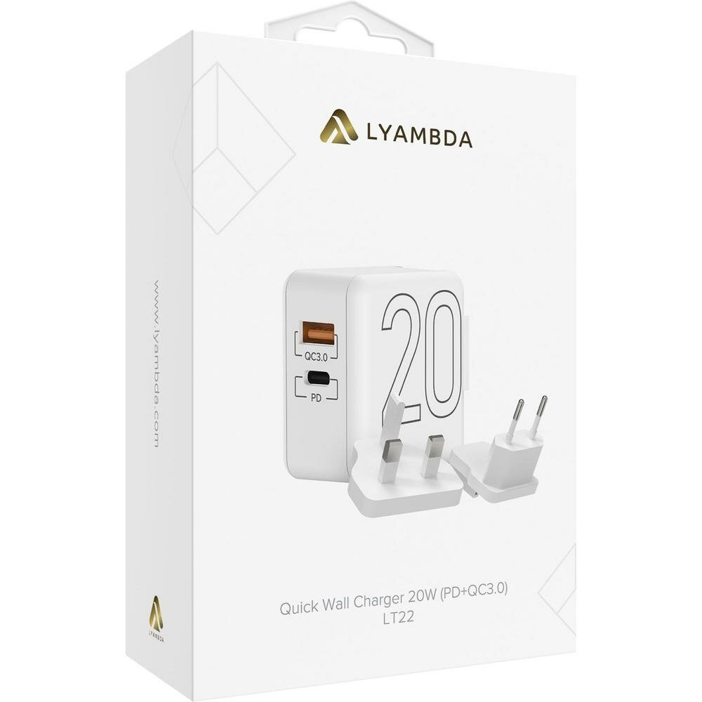 Зарядное устройство Сетевое зарядное устройство Lyambda LT22 20Вт USB Type-C(PD) + QC3.0 белый