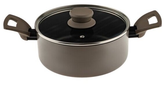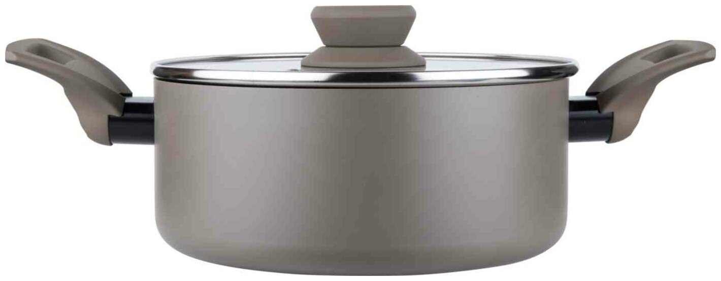Лучшие цены. Кастрюля DUNE из коллекции Hitt Sahara изготовлена из листового алюминия толщиной 2,5 мм. Двухслойное антипригарное покрытие немецкой марки Greblon устойчиво к царапинам и истиранию, абсолютно безопасно в процессе эксплуатации. Наружное стойкое цветное покрытие выполнено в трендовом оттенке taupe gray. Эргономичные ручки с мягким силиконовым покрытием не нагреваются. Плоская стеклянная крышка с ободком из нержавеющей стали имеет отверстие для выпуска пара. Магазины в вашем городе.