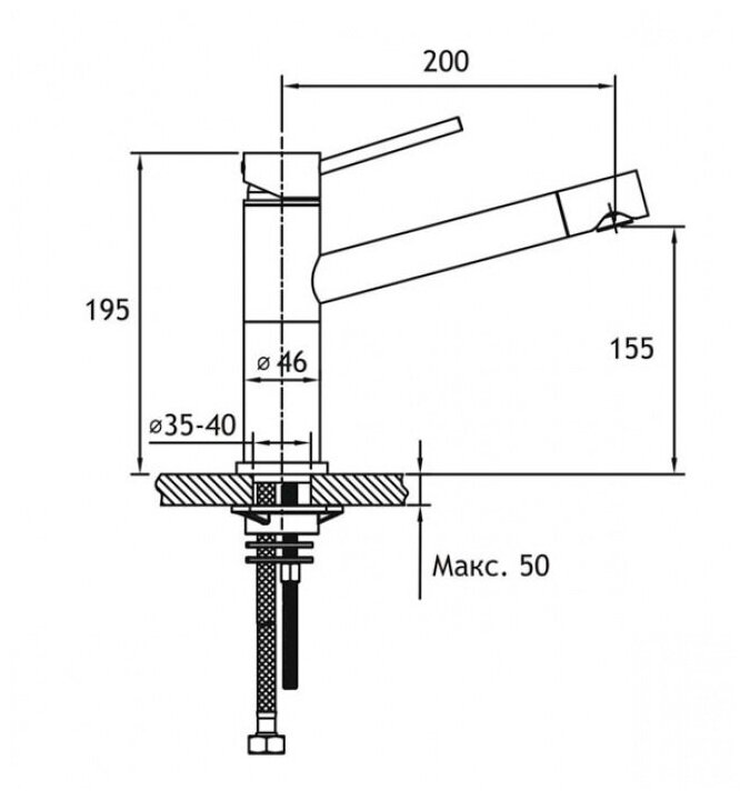 | Подвод воды | шланги / 400 мм / G 3/8" |