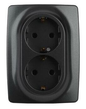 Розетка ЭРА Розетка 2X2P+E Schuko, 16A-250В, Ip20, Эра12, антрацит (10/100/1600) Б0031232 .
