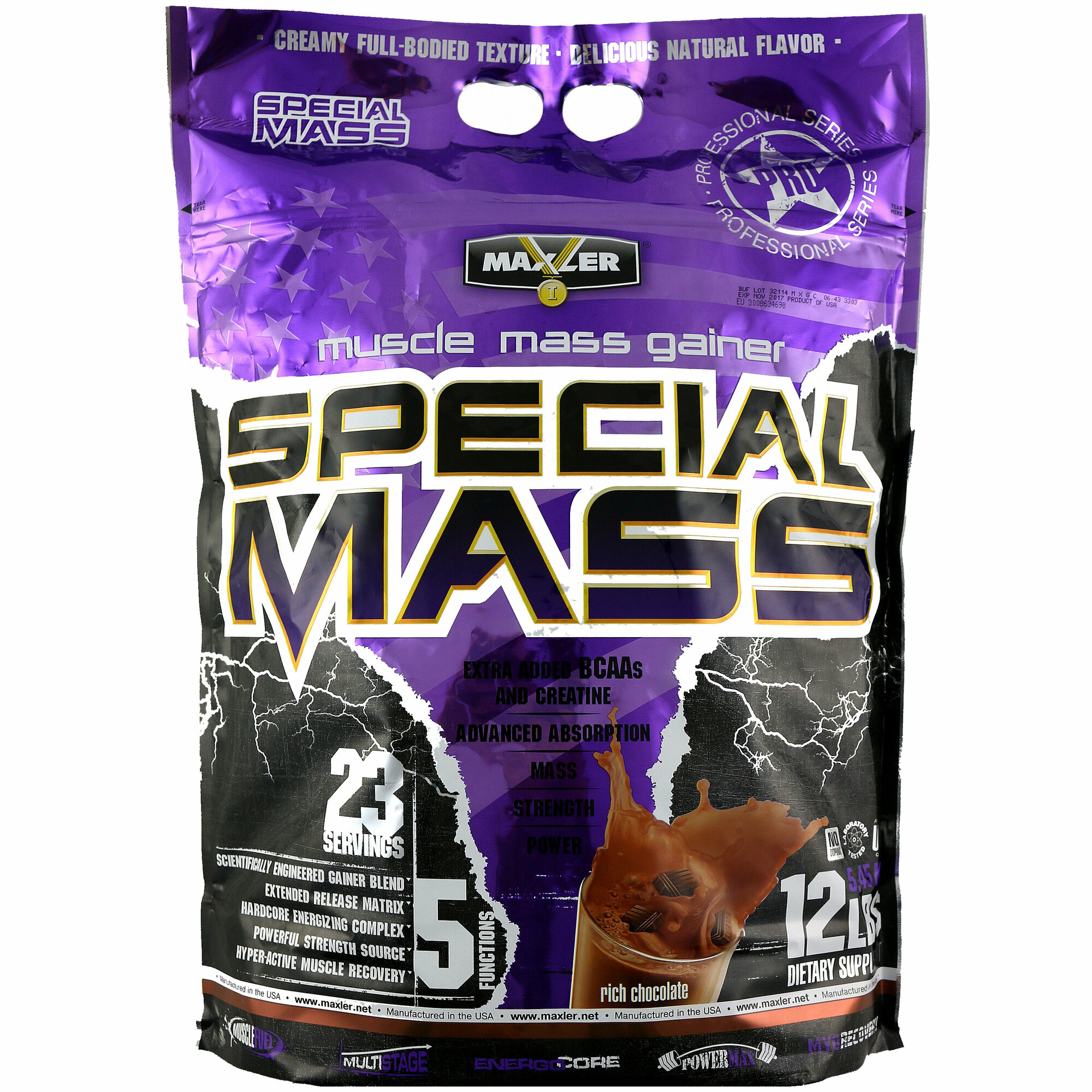 Лучшие цены. Special Mass — это мощная формула для роста мышц, специально разработанная для активных людей, которым нужны высококачественные протеины, повышенные дозы сложных углеводов и питательных веществ. Продукт особенно подойдёт тем, кому сложно набрать массу, а также атлетам, нуждающимся в высокоуглеводной пище, дополняющей программу тренировок на выносливость. Каждая порция Special Mass содержит 6 различных видов протеина. Магазины в вашем городе.