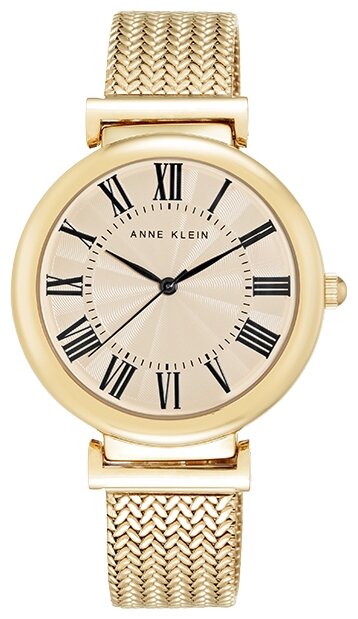 Лучшие цены. Часы наручные кварцевые женские ANNE KLEIN 2134 CRGB. Круглый металлический корпус и браслет с покрытием желтого золота.Циферблат с римскими цифрами. Браслет миланского плетения с надежной защелкой. Минеральное стекло с защитой от царапин. Водозащита 30м. Магазины в вашем городе.