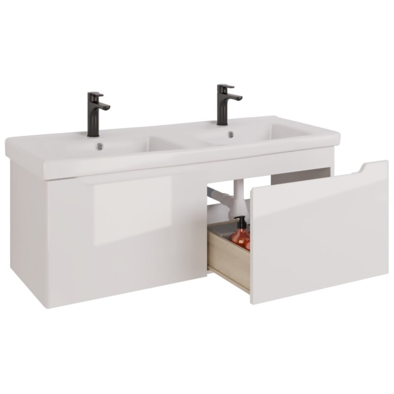 Тумба Dreja W 125, 99.9400, подвесная, 2 ящика, белый глянец