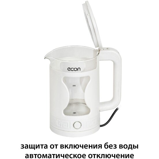 Econ Чайник электрический Econ ECO-1505KE, 1500 Вт, стекло, 1.5 л, белый