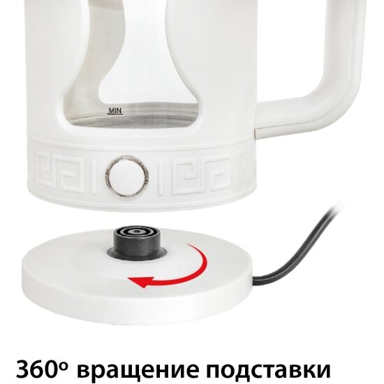 Чайник электрический Econ ECO-1505KE, 1500 Вт, стекло, 1.5 л, белый